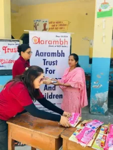 As part of its regular outreach, Aarambh conducts sanitary pad distribution drives in schools, villages, and urban slums, ensuring access to safe and hygienic menstrual products for those who need them most. Alongside distribution, the Trust organizes menstrual hygiene awareness talks and interactive quizzes, helping break long-standing myths and taboos associated with menstruation.